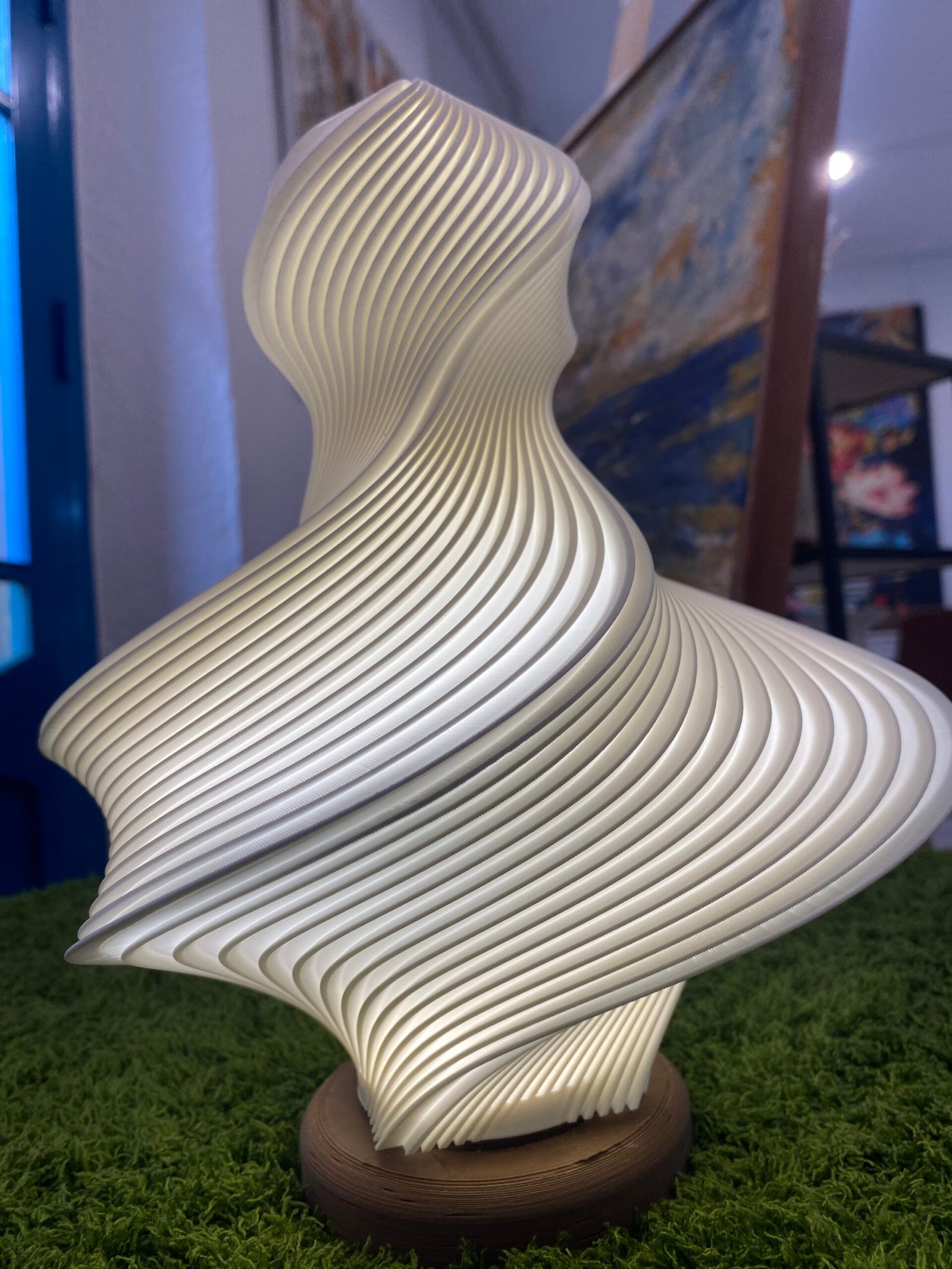 Submergeix-te en l’elegància de les formes corbes amb la nova Llum Cream. Més que un simple llum, aquesta peça és una escultura d’art que sembla capturar el moviment d’un fluid en el buit. El seu disseny envolupant genera un joc d’ombres i llums suaus que aporten una sofisticació instantània a qualsevol interior.